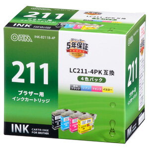 オーム電機 ブラザー LC211-4P対応 互換インクカートリッジ 4色パック INK-B211B-4P